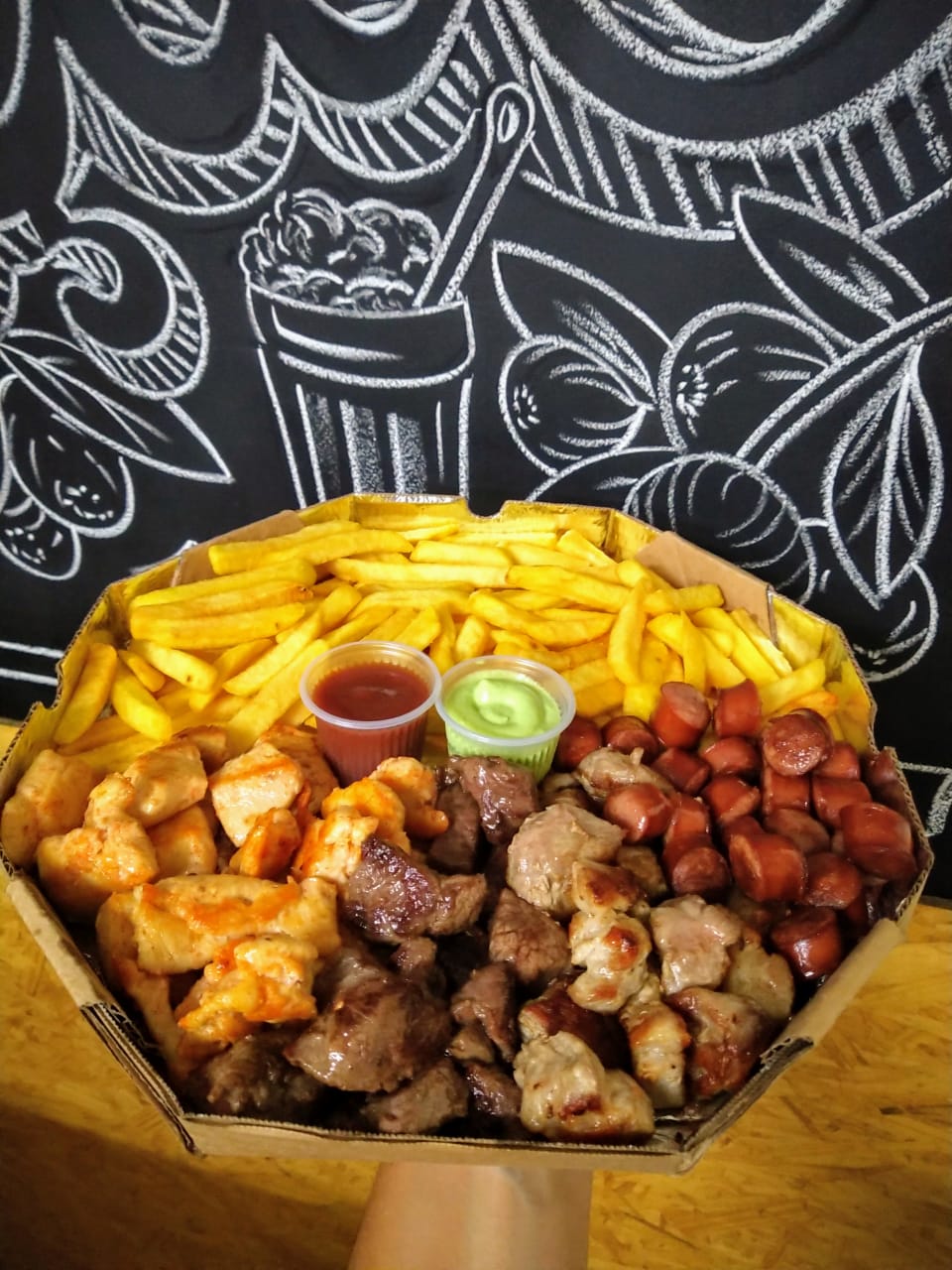 Churrasco misto com fritas. R 2200 para 4 pessoas Contate-nos Mensagens Produtos adicionais Contato. 3 Ka misto promo. Churrasco misto com fritas pão de alho coração de frango salsichão e muito mais.